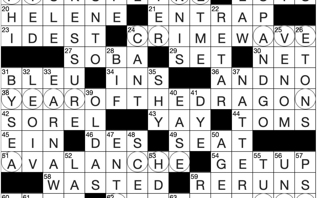 Filled in crossword grid for ClassiCanadian Crosswords 20 December 2023