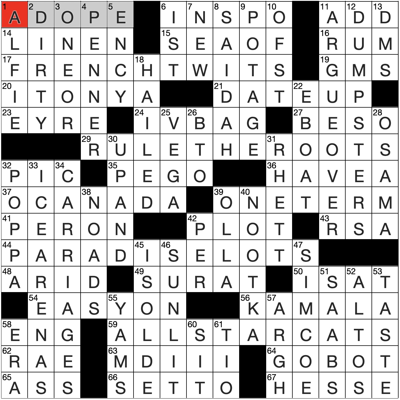 Filled in crossword grid for ClassiCanadian Crosswords 1 October 2025